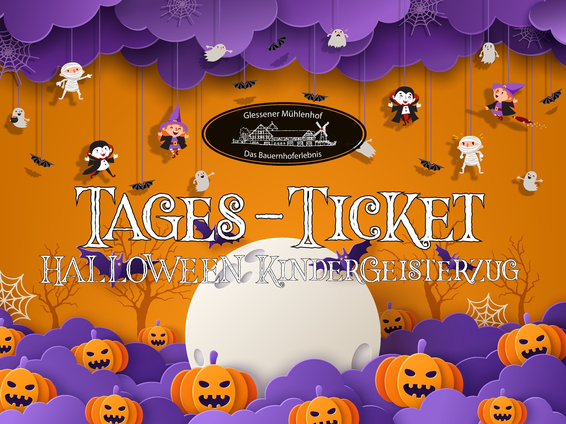 Im Preis inkludiert ist somit die Nutzung des Hofgeländes am gesamten Tag (mit verlängerter Öffnungszeit) und der Kindergeisterzug. Zusatzangebote kosten extra!
